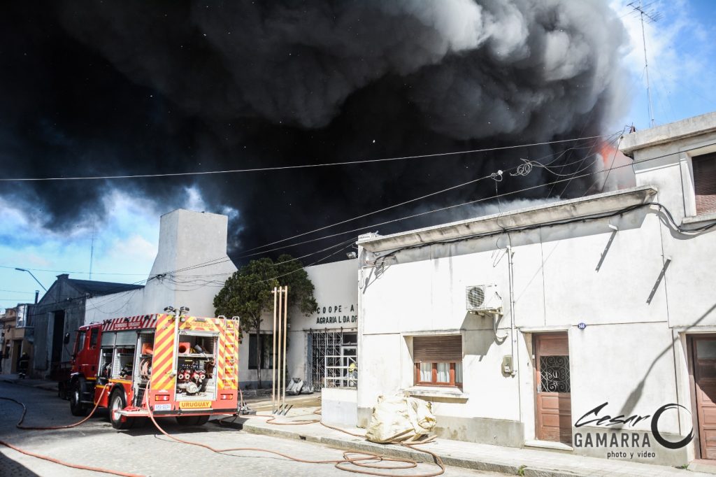 En el medio día del lunes 14 de Setiembre, a las 12:30 aproximadamente, se registró un incendio en la ciudad de Rocha, más precisamente en calles Florencio Sánchez entre Rodó y 19 de Abril en un depósito con pérdidas totales, en galpones de ex Cooperativa Agraria de Rocha.